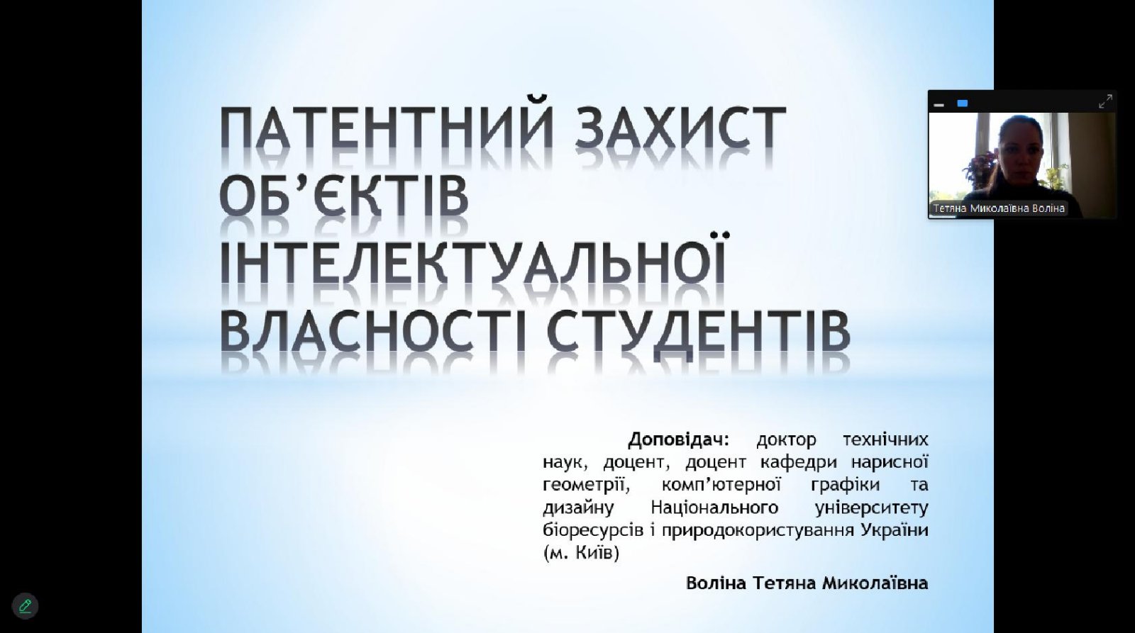 25.09.2025 р. на запрошення доцента Ірини ЗАХАРОВОЇ для здобувачів першого (бакалаврського) і другого (магістерського) рівня вищої освіти провела гостьову лекцію доктор технічних наук, доцент, доцент кафедри нарисної геометрії, комп’ютерної графіки та дизайну Національного університету біоресурсів і природокористування України (м. Київ) Тетяна ВОЛІНА.