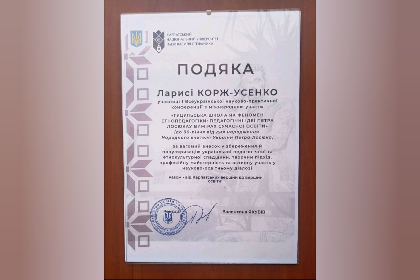 Під час конференції з вітальними промовами звернулися ректор Карпатського національного університету імені Василя Стефаника, професор Валентина Якубів та голова вченої ради, професор Ігор Цепенда, відзначивши подяками освітян за вагомий внесок у збереження та популяризацію української педагогічної та етнокультурної спадщини, творчий підхід та професійну майстерність. Серед них - професор кафедри менеджменту освіти та педагогіки вищої школи Сумського державного педагогічного університету імені А.С. Маренка, Лариса Корж-Усенко.