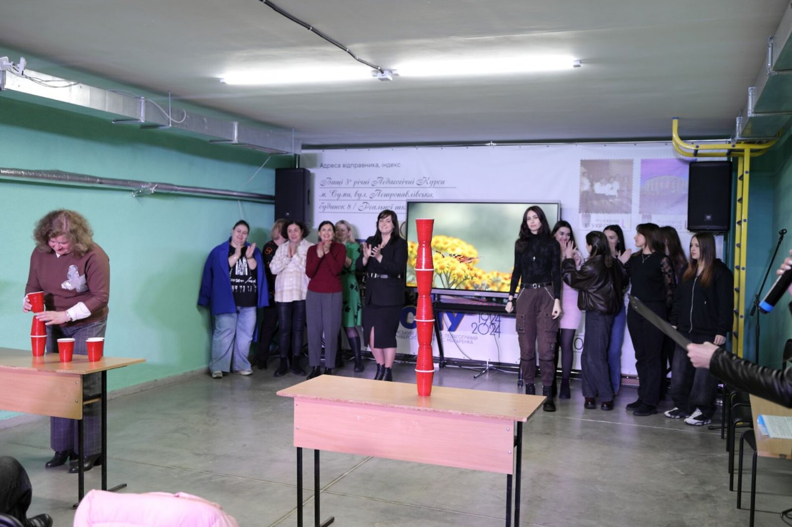Особливо приємно було вболівати за представниць нашого факультету, які брали участь у змаганнях між командами викладачок та здобувачів освіти. Учасниці продемонстрували неймовірний артистизм, креативність та справжній командний дух, подарувавши всім присутнім хвилини радості та щирого натхнення.