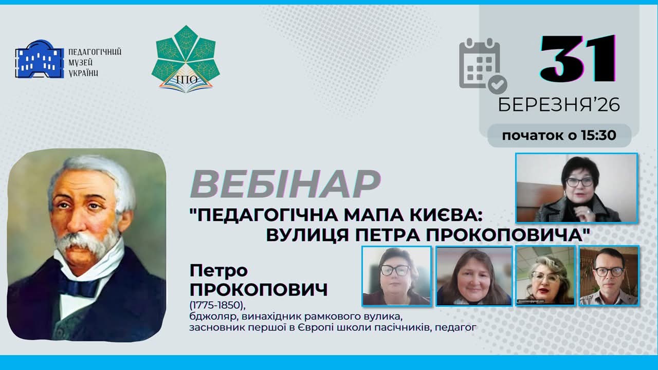 31 березня 2026 року відбувся вебінар «Педагогічна мапа Києва: вулиця Петра Прокоповича», присвячений постаті видатного українського бджоляра, винахідника та засновника першої в Європі школи бджільництва.